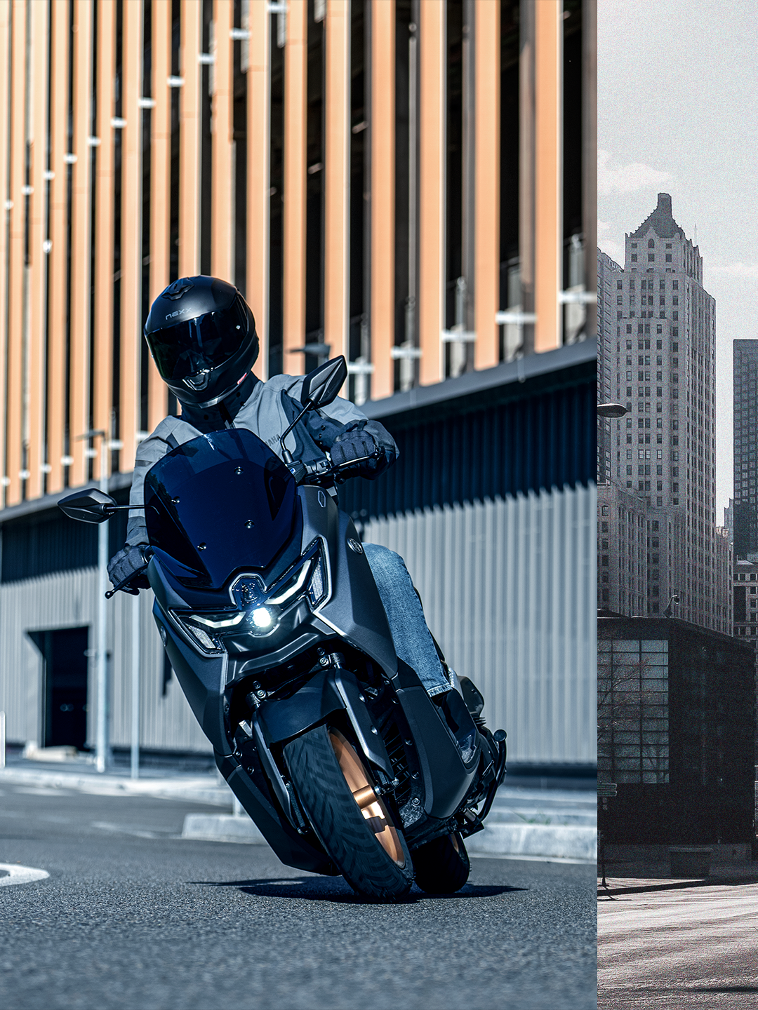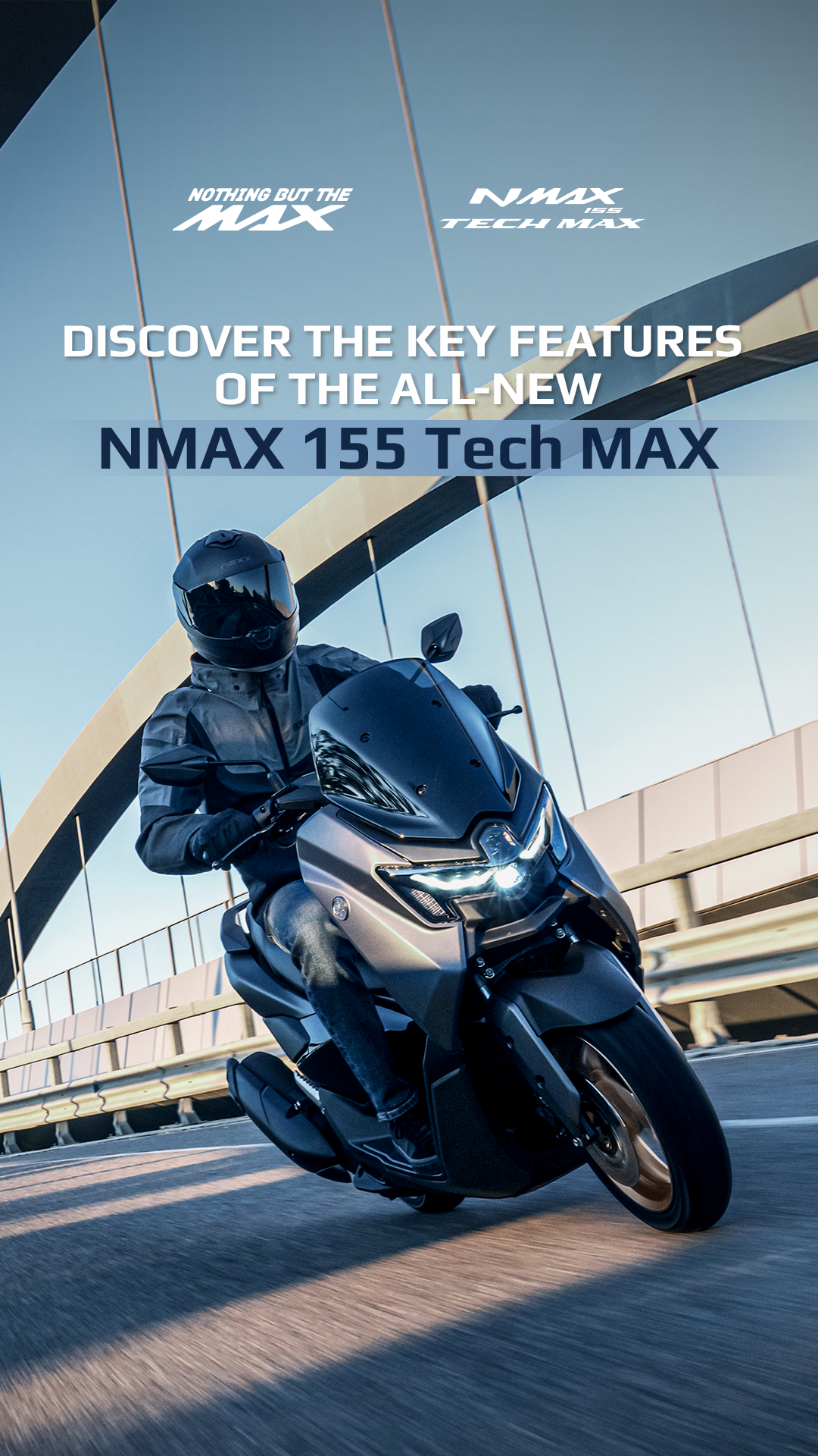 Διαθέτοντας το εμβληματικό στυλ που αντλεί έμπνευση από τη σειρά MAX με τα μοτίβα μπούμερανγκ, τον φωτισμό LED και τις μικρές εξωτερικές διαστάσεις, αλλά και εξοπλισμένο με έγχρωμη οθόνη TFT με συνδεσιμότητα και λειτουργία πλοήγησης Garmin*, το νέο NMAX 155 Tech MAX προσφέρει τεχνολογία αιχμής και κορυφαίες προδιαγραφές σε συνδυασμό με ανταγωνιστικό κόστος. Με την ομαλή ανάρτηση, την πιο εκλεπτυσμένη σέλα και τα αποκλειστικά του χρώματα, είναι ένα όχημα που θα σας κάνει να νοιώθετε υπερηφάνεια που το έχετε στην κατοχή σας. (*Η πλοήγηση Garmin σε πλήρη χάρτη διατίθεται δωρεάν, αλλά δεν είναι διαθέσιμη σε όλες τις χώρες. Ορισμένα χαρακτηριστικά πλοήγησης δεν είναι διαθέσιμα σε όλες τις χώρες.)